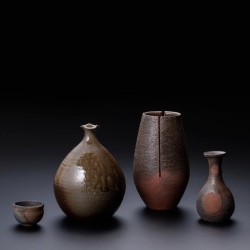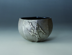 岡本達弥「銀彩流文茶盌」 径13.0×高9.3cm