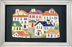 自然の風景や日本の町並み、南欧の街角をレリーフ技法や九谷の色絵で陶板に表現しています。