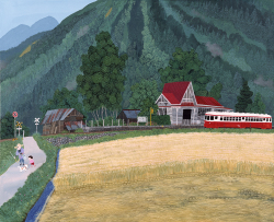 原田泰治は自然豊かな風景や古くから日本に息づく風物詩を描き、その素朴でありながら心に直接届く作風で多くのファンを持つ作家です。