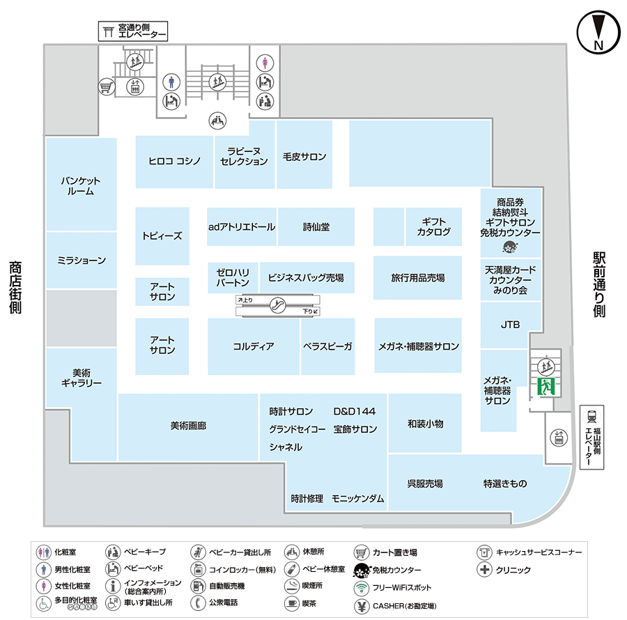 プレタポルテ / 旅行用品 / 呉服 / 時計 / 宝飾 / メガネ / カードカウンター / 美術画廊 / バンケットルーム